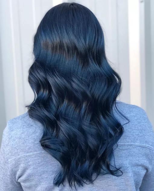 蓝黑色的头发,在室内和室外所呈现出来的效果都是不一样的,其实这种黑色调中带点蓝调的发色,并不怎么挑人,黄黑皮女生染上也适合,肤白的女生染上就更不用说了,显白无疑嘛!超级适合黄皮的深色系,无敌显白,还很独特,平常在室内蓝色若隐若现,很是低调,但在阳光下特明显,仙气十足,超级好看。