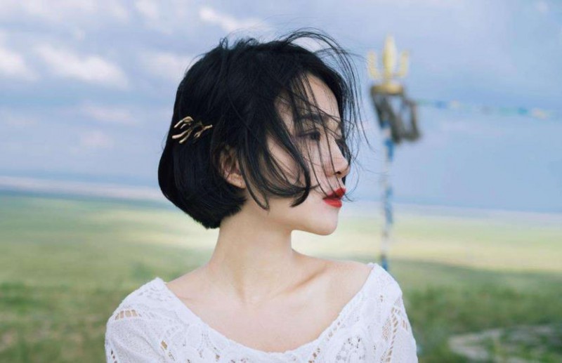 这种造型很有日式风格,整齐厚重的齐刘海搭配两颊两侧整齐断开的鬓发,造型时尚又复古,可以很好的修饰脸型,特别是对脸大的女生来说,即使把头发扎起来也不怕露出大脸庞。