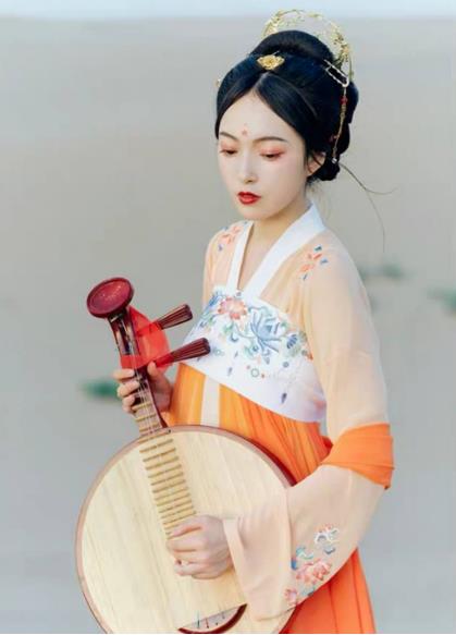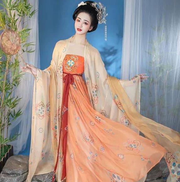 3、唐代:袔子。唐朝以胖为美,女子比之前可要开放多了,半露胸式裙装是她们的最爱了,她们的内衣面料追求色彩缤纷的,低胸款式。将束带在高腰的地方紧紧绑起来,让酥胸更加明显,然后再在最外面披上半透明披肩。