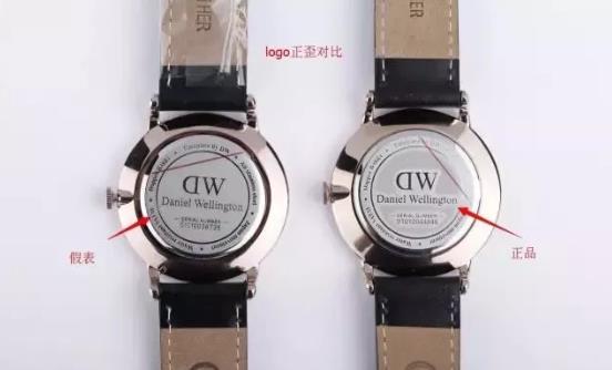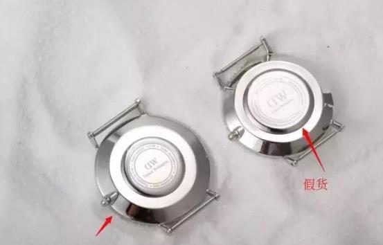 下图为真假Daniel Wellington表背壳的对比,左真右假。虽然右下图的表壳上刻字也算