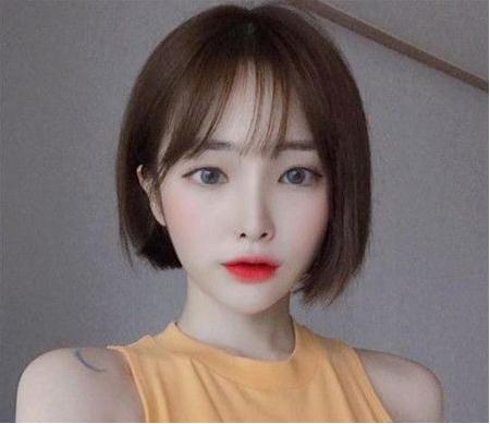 4. 漫画刘海短发 漫画刘海短发还是比较有特点的,和一般的女生发型不一样,这款发型的刘海略厚,而且发尾一定要齐。可以略有层次,但是要保持发尾的厚重感,这是漫画刘海的发的一个关键点。长度到下巴即可。发色建议黑色、亚麻青这样的冷色调,更显高级。这款发型比较适合发量多的小个子女生,圆脸鹅蛋脸都可以尝试。