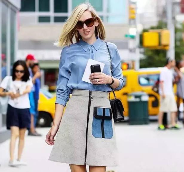 搭配一:蓝色上衣+A字裙 小编个人比较喜欢穿A字版的小裙,因为它对身材的包容性比较大,可以很好的遮住胯宽大腿粗。图片中这款小A半裙真的很好看,柔和的大地色很衬肤色,加入侧边蝴蝶结点缀,简直不要太精美!蓝色上身搭配这样一件裙子,随性又优雅,清新自然,真的是美到爆!