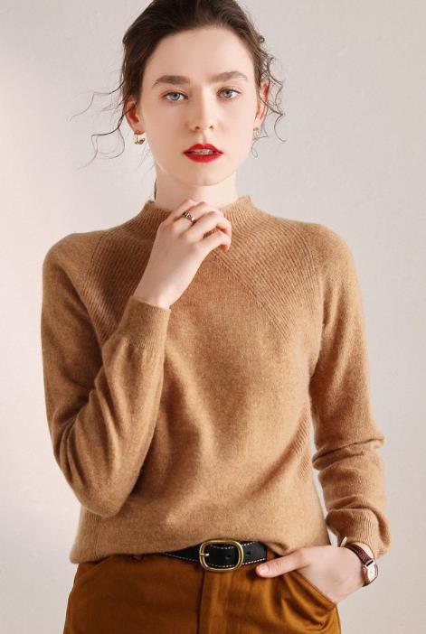 3. 在穿着高领羊毛衫时,尽量动作轻柔,不要用力拉扯,穿着时,将领口翻下的部位恢复原状,然后套进去再将领口翻下即可(增加受力面积,可以防止过早变松)。