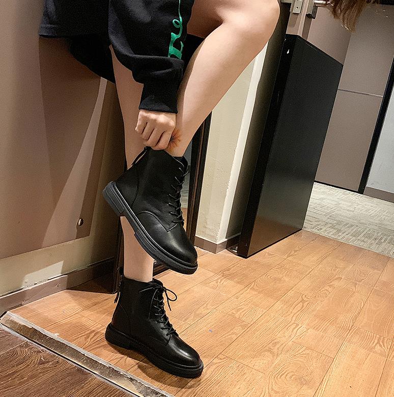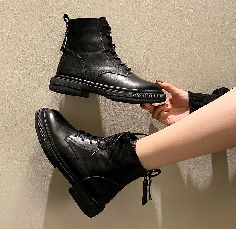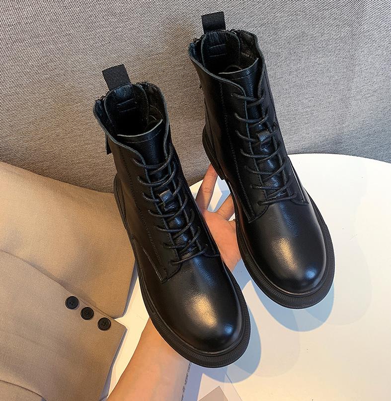 3. 设计 在选择马丁靴的时候也要注意它的细节设计,比如鞋头是圆头尖头还是方头,不一样的鞋头穿出来的风格也不一样。还有鞋底是厚的还是薄的,厚鞋底可以起到修饰腿型的作用,但是看起来不太日常,而薄鞋底就是相反的作用,没什么修饰的效果,但是很日常。另外,有些设计师还会别出心裁地在鞋面上做出不一样的设计或者是选择不同的颜色,不再拘泥于传统的黑色和褐色,这些都会给马丁靴带来不一样的感觉。