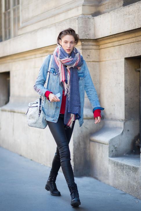首先这款围巾就很个性,海报网编编之所以称它为乞丐结就是因为它很有破旧的效果,HOHO~~。别看它系出的效果好像很复杂,其实系法很简单哦!把围巾从前面挂到脖子上,围巾两端在颈后交叉后再绕到胸前,把右手边的拉出一个小孔让左侧的边穿过去搭到背后,右边的同样穿过左边拉的孔搭到背后。这样的围巾搭配休闲衣服很适合哦