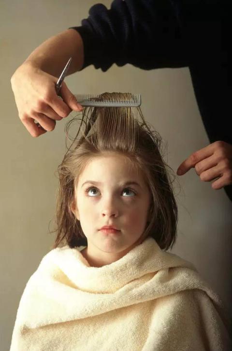 4.最简单的方法就是在头发潮湿的时候剪,仰起头,把头发梳好后直接剪一刀齐的线条,这种方法特别适合头发稀少的人。