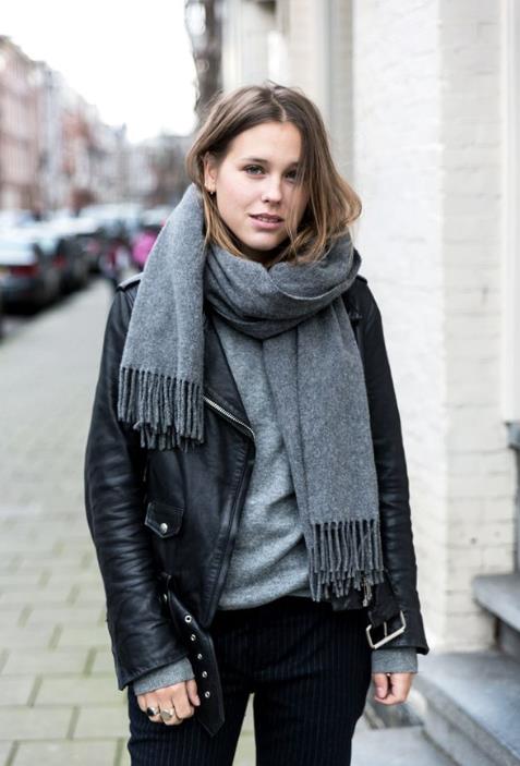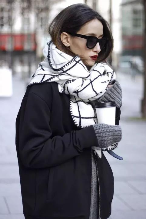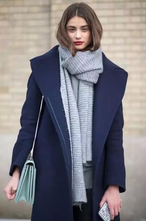 样式普通的围巾造型,在整体搭配效果上会给您耳目一新的感觉。这种围巾会使脖颈处稍显蓬松,所以在搭配大衣时,要将衣领立起,把围巾系在外面,这样看起来不会显得臃肿。