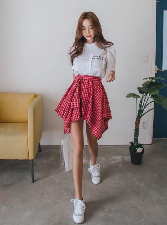 3. 第3种方法是把过长的T恤塞入裙子或者裤子以内,这样就显得T恤比较短。