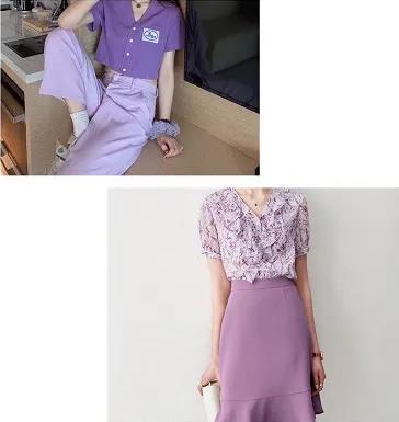 2. 淡紫色上衣搭配同色系下装