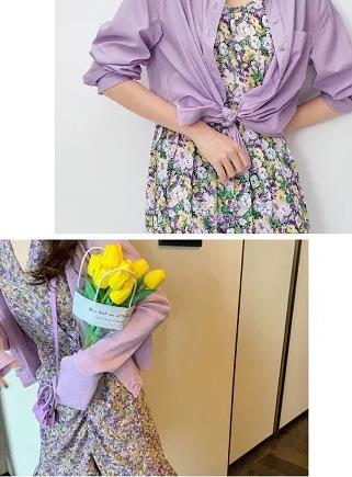 我们知道紫色的撞色搭配有黄色、粉色、红色,下装选择这几个颜色搭配,撞出时尚潮感。例如,淡紫色外套搭配黄色碎花连衣裙,清凉明亮,浪漫不失韵味。