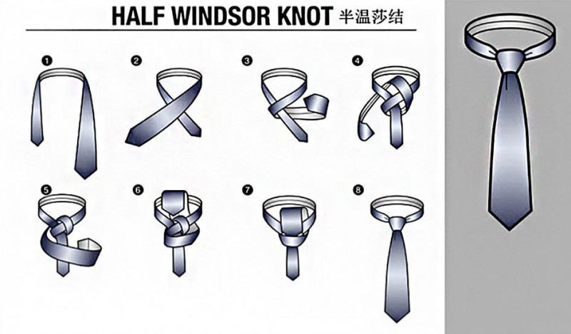 它们的不同在于前者有两个结,即两圈。这种结适合个子矮小的男士, 它适合意大利领和稍细的领带且简单易做。