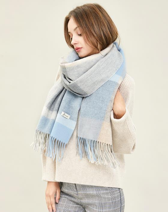 适合的围巾款式: 这种穿插系法最好是用长款的围巾,不要太厚实的款式就好。喜欢复古文艺风的话,可以选择最经典最不挑人的格纹款。喜欢偏基础简约一点的,在素色款的围巾上套用穿插系法也同样是不会显得单调。