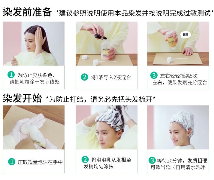 4. 还有需要注意的是,染发后最好三天不要洗头发,这样才能更好的护色。这款泡沫染发剂,使用起来非常方便,而且颜色很多,染发后,没有刺鼻的药水味,头发也还是很健康的状态。