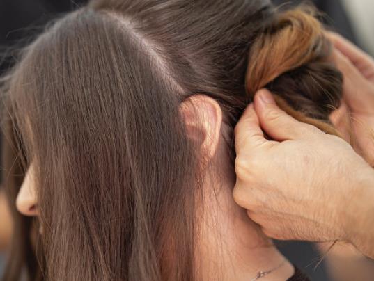 爱心初步成型之后,将剩余的头发稍加固定即可。