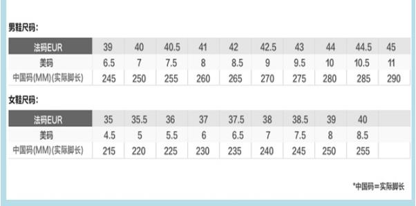 中国大陆新鞋码 34 35 36 37 38 39 40 41 42