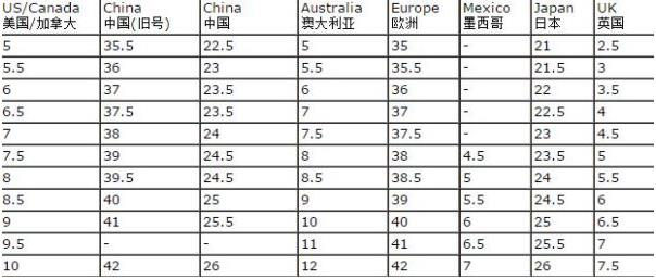 日本鞋码和中国鞋码转化