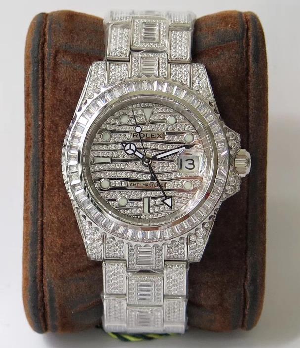 116769TBR是劳力士迄今制作过最昂贵的一款手表。它采用18K白金表壳,整只表从表壳、表圈、面盘到表带都镶满了成百上千颗钻石,跟我们印象中的劳力士差很大,这是一款凭着自己与生俱来的华丽程度而达到这个身位的劳力士。