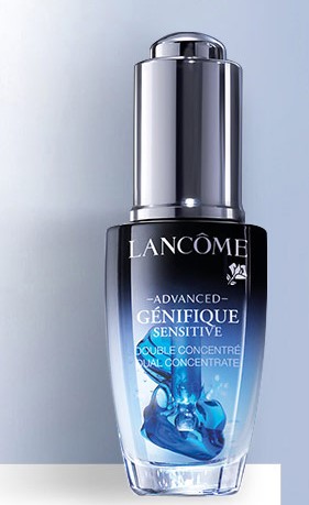 使用兰蔻安瓶是需要先将黑帽按顺时针扭动并将蓝色的精华液释放进基础精华液中,接着将其摇匀,最后将其拧开并将黑帽丢弃,用银色的滴管进行使用。一般安瓶用在精华之后,用按摩打圈的方式均匀涂抹在脸部。