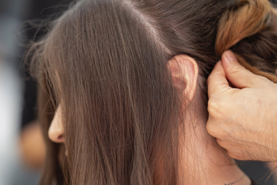 头发稀少的女生可以选择扎一个侧马尾的发型,通用又简单,适合多个场合。把头发都放在一边,取出一小撮发丝绕着马尾旋转,最后用橡皮筋固定就可以啦~发顶轻轻拉松一些会显得更加饱满哦~