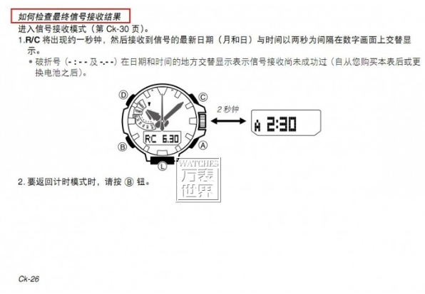 卡西欧电波表如何对时