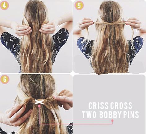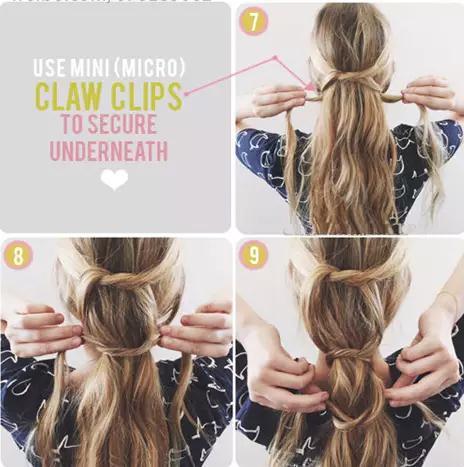 STEP3:用橡皮筋固定。 STEP4:翻转发丝。