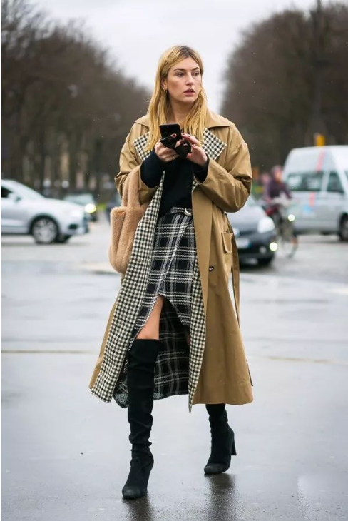 谁说风衣只能搭配裤子的,搭配上裙子来说,也是非常时尚好看的,最近比较流行百褶裙打底,冬季大衣加上百褶裙能够增加俏皮感,春季的风衣搭配百褶裙更能够增加时尚感,如果你不想和别人雷同,不妨试试百褶裙打底吧,效果绝对让你意想不到。