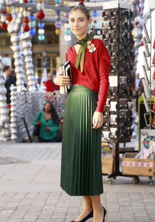 大红色是一种很受欢迎的颜色,大红色的服装不挑肤色和年龄,穿起大红色的衣服总会显得气色很好哦!大红色搭配绿色系也是不错的选择,不要认为红色与绿色搭配在一起会特别土气。大红色搭配草绿色或是墨绿色都特别好看,显得高级又独特时髦,这样的颜色组合真的特别新颖个性哦,很适合追求时尚的女性~