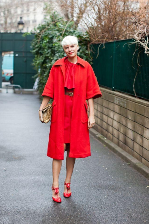 同色系的搭配永远都不会出错,同色系总给人一种很简单高级的感觉。如果平常你不懂得如何搭配颜色时,不妨选择简单低调的同色系吧!大红色可搭配大红色,浅红色,橘红色,血红色或是暗红色酒红色都OK哦!只要是同色系,一般都不会出错的~