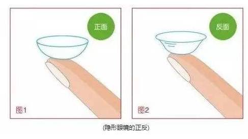 隐形眼镜托在指尖上,从侧面观察,如果它的四周的弧度是向下翻,那就是反的,如果周围的弧度平滑向上,那就是正面。