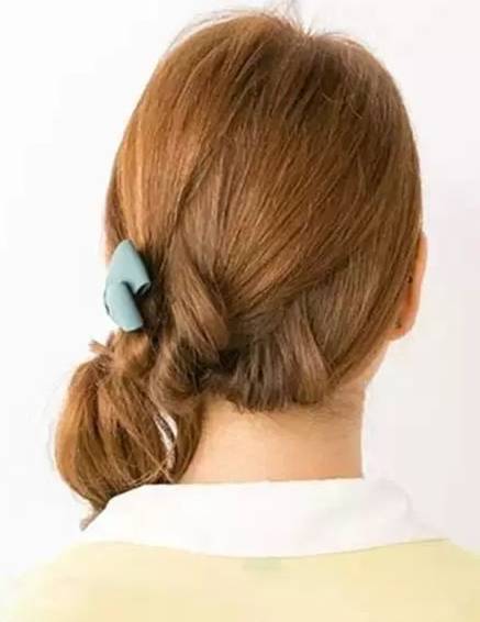 长发如果不想让它披散在肩上的,那么还可以将它扎成这样的造型——打结马尾,(步骤如上图所示)方法简单,自己在家也可以独立完成,而且这款打结马尾还可以带来一定的时尚减龄气息,不会显得过于的单调。