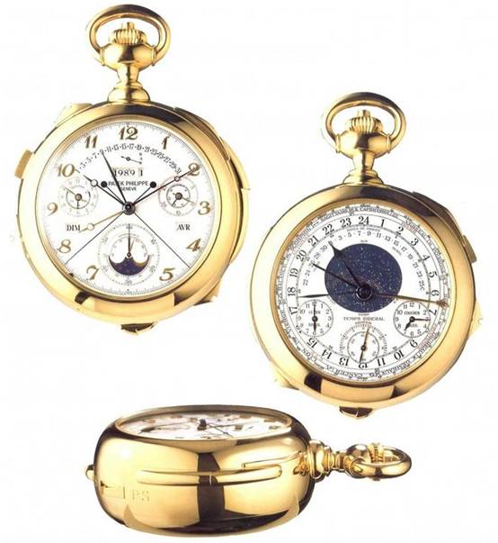 详细介绍:这款表价值1100万美元,诞生于1932年,表盘由18K金打造,被誉为是世界上最复杂的表,因为他拥有24个功能,零件数量多大900个艺术。