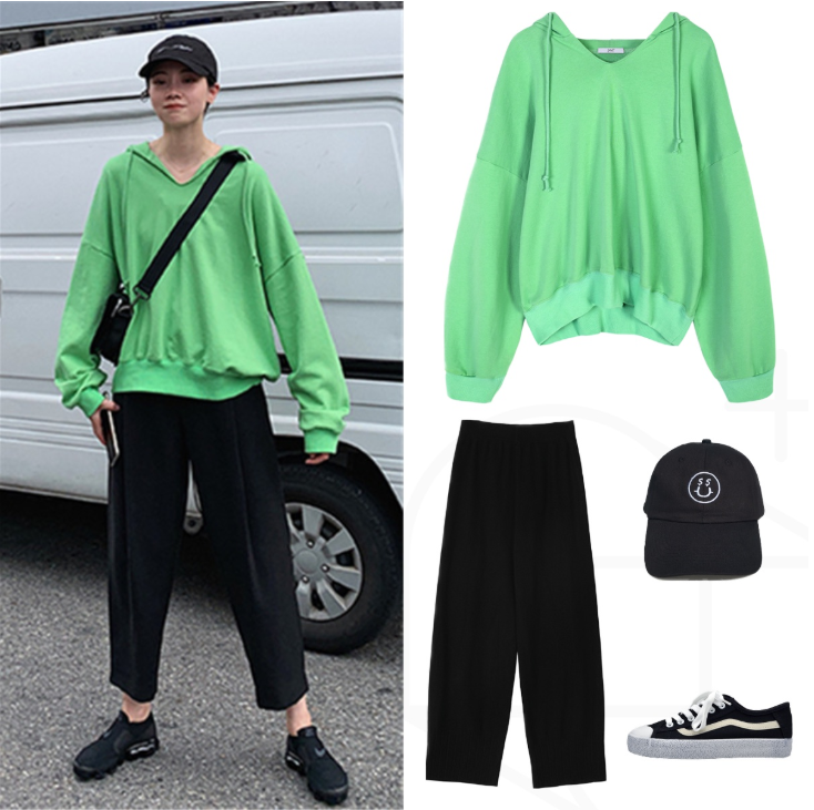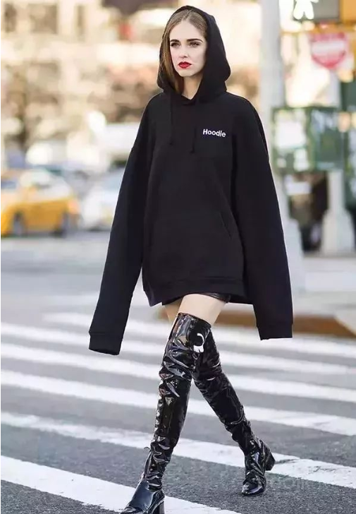 NO.7宽松卫衣+黑色小脚裤:黑色小脚裤是近年来最有人气的单品之一,适合和任何的上衣搭配,当然也适合宽松卫衣,黑色又是百搭的颜色,小脚裤时尚显瘦,看起来让整个人气质提升不少。