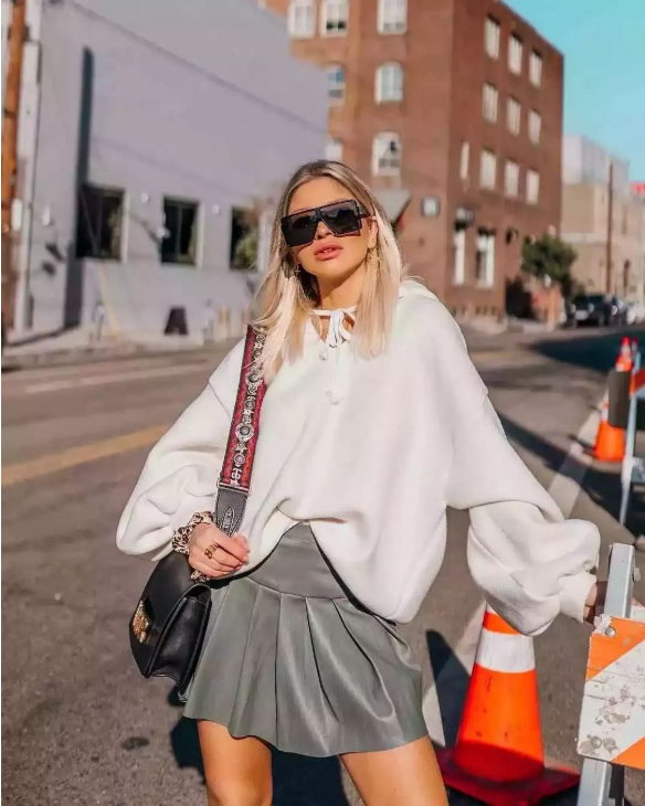 过膝半身裙搭配宽松卫衣绝配,再搭配一双帆布鞋或者运动鞋,让整个人充满活力!穿出元气满满feel,卫衣承载着多少人的青春啊!