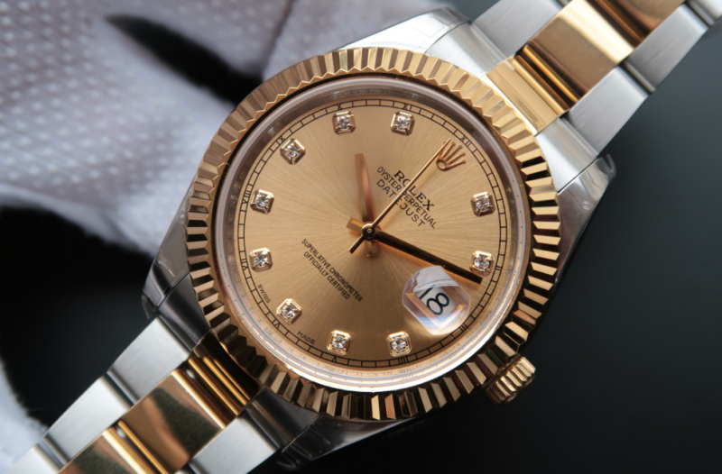 6. 而假表仿表,就很难兼顾这些地方,通常随便一刻就了事了,所以,从刻字的这个地方就很容易地区分真假劳力士,一般假冒的Rolex劳力士表带做工比较粗糙,尤其是间金的更明显会出现间金镀金边缘处理不好的情况。