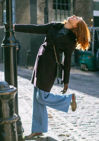 单侧的蝴蝶结系法就比较的随性了,系起来风衣的腰带就不会飘来飘去了,显得十分的累赘,只要随意的打个结,不仅利用腰带来提高腰线,还能显瘦。敞开穿显得十分的臃肿,系个结这么简单就能显瘦,还不赶快学起来。