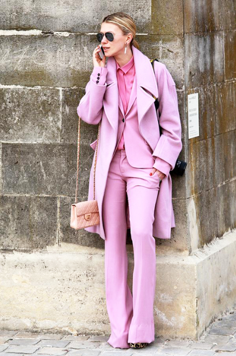 西服不仅仅是男士的最爱,今年来也成为了女生耍帅的必备单品。单单一件西服太过于沉闷,OL风十足,提上一款粉色包包搭配西服不仅减少了OL风,还增添了些许优雅的气息。