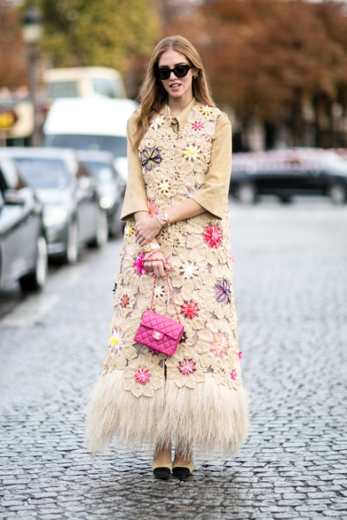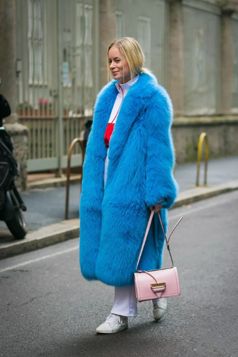 粉色包包搭配皮草完美的将奢华感与优雅感结合在了一起,而且也很好的在视觉上减少了皮草所带来的臃肿感。