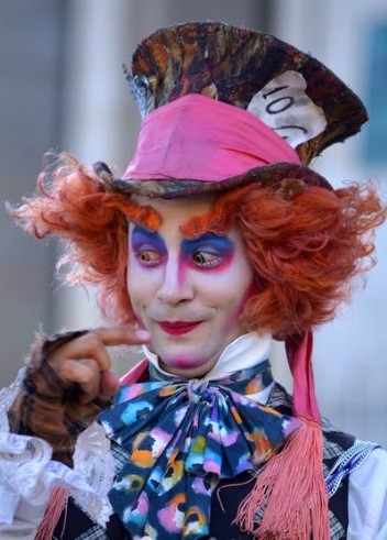 2、眼睛,小丑的眼睛部位夸张而具有喜剧的斗鸡眼效果,主要用椭圆形、圆形、三角形、菱形来表现。眼影颜色用白色、蓝色、黑色、红色表现,可以不按照常规眼睛化妆,眉毛和眼睛相连接。必要时候可以让演员佩戴灰白色、黑色的美瞳。