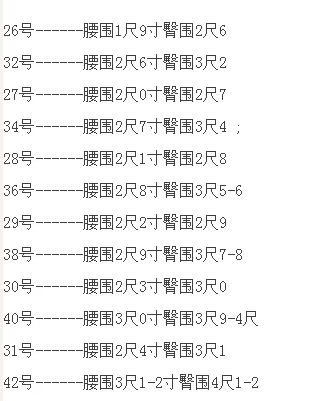 裤子尺码对照表