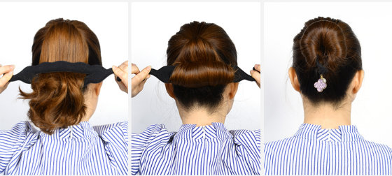 不要松散的一款丸子头效果,就需要用到发夹的固定了,分别对几个地方进行发夹的固定哦!