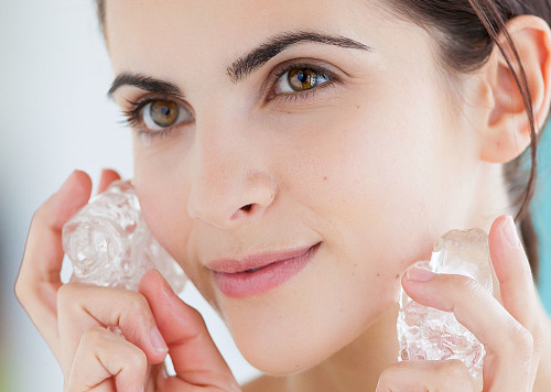 把干净的专用小毛巾放在冰箱里,洗完脸后,把冰毛巾轻敷在脸上几秒钟。