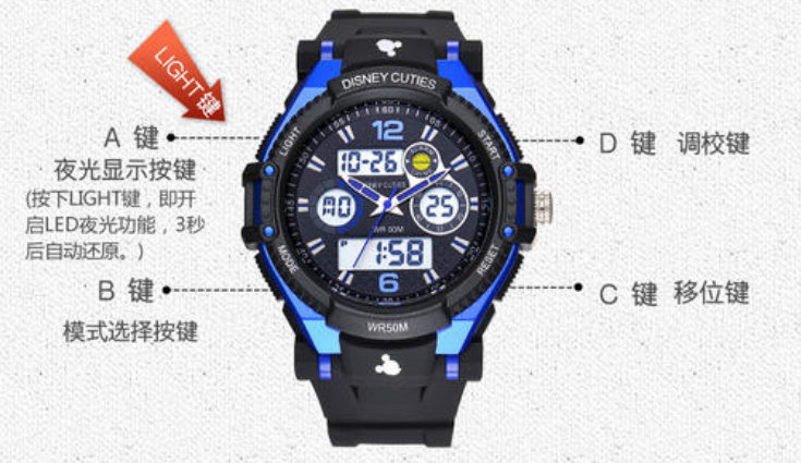 ②当“时”、“分”、“年”、“月”、“日”画面闪动时,按“D”按钮加数字,按“B”按钮减数字。