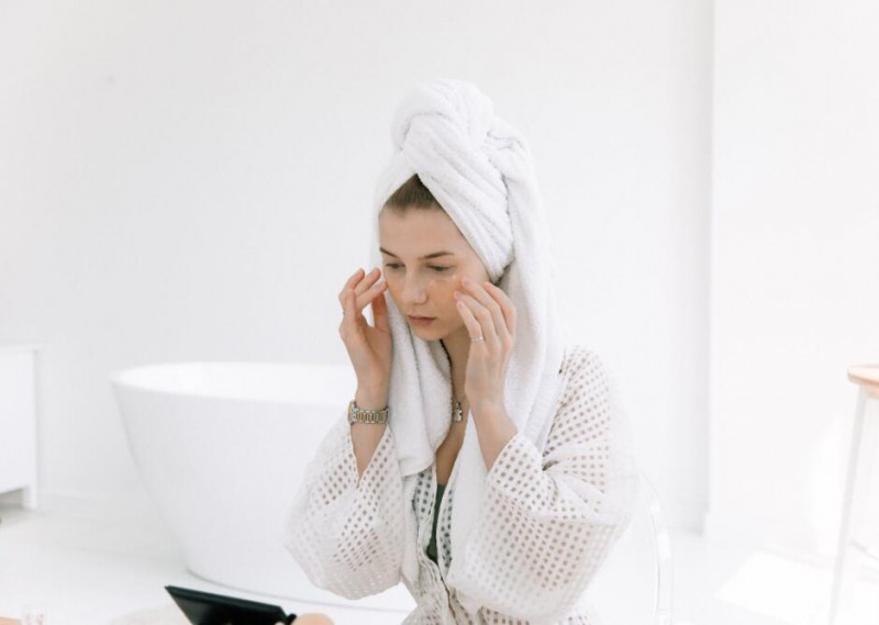 涂上乳液或者面霜,如果是油性肌肤就使用乳液,若是干性肌肤可以使用面霜。