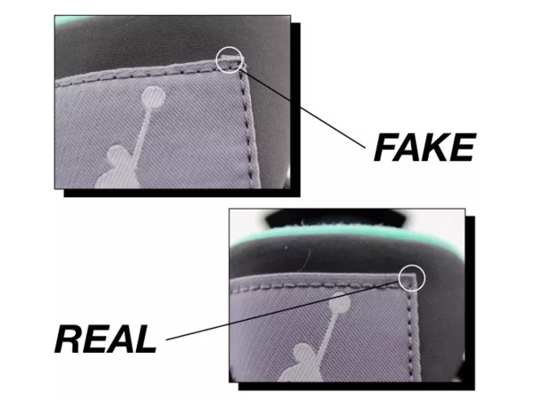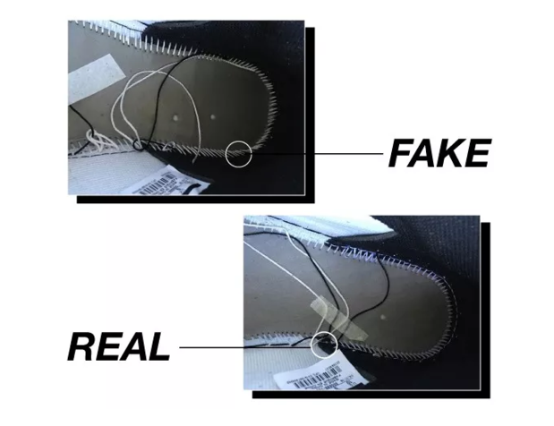上假:假鞋有一处的缝线处于堆叠状态,缝线是松松软软的。