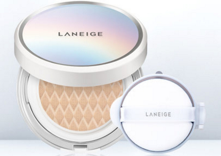 这个牌子在国内推荐力度蛮大的,名字很好听”雪花气垫” 有五种功效:遮瑕、美白、补水、改善肤色、隔离紫外线 涂上会有很清凉的感觉,含有40%绿茶提取物 任何肤质的mm都可以用 现在几乎是韩国女生人手一个的气垫了。