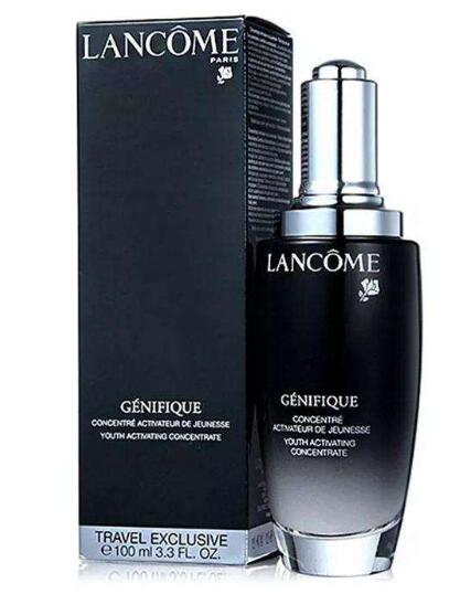 打开包装之后,我们来看一下瓶身外观上的差别。正品兰蔻精华肌底液瓶身上的黑色比较多,几乎接近了瓶底部位。而假兰蔻小黑瓶的瓶身看起来颜色比较浅,黑色的部分比较少,下图中大家可以很清楚的看出差别。但是现在仿品也在不断的改进,大家不要单凭这一点就断定真伪哦,这个只是一方面的参考。