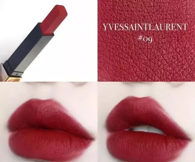 2. 小金条09。丝绒质地,薄涂偏玫调,厚涂复古铁锈红,气场强劲,黄黑皮也可以哦.