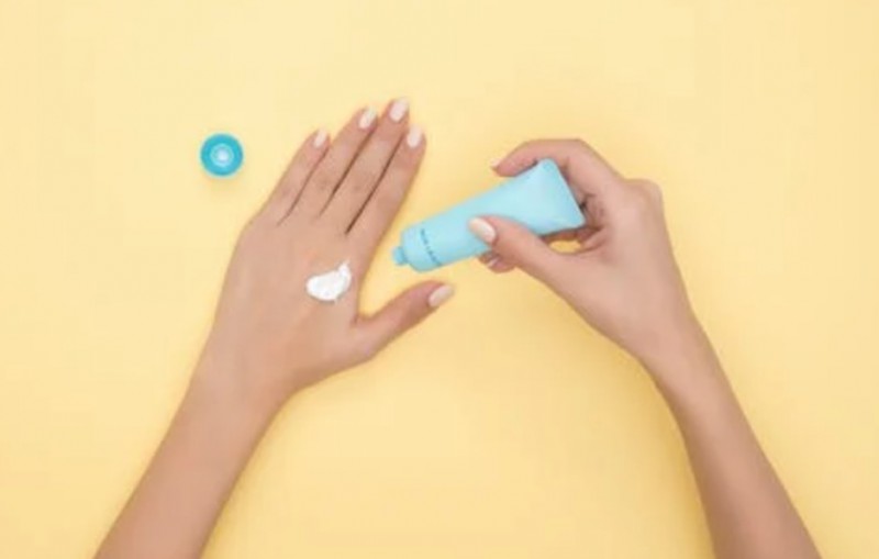 使用指尖将防晒霜均匀涂抹开,不要错过每一个角落。