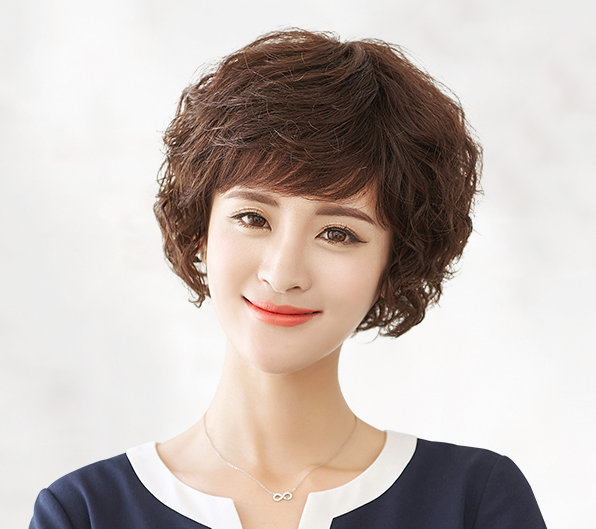 头发是短发的女士们,总是给人很显年轻利落的感觉,中年女士蓬松短烫发发型,用凌乱效果的烫发展现出发型的灵动和蓬松气质,空气感的刘海搭配能让短发形状更完整,发型尽量偏后梳。