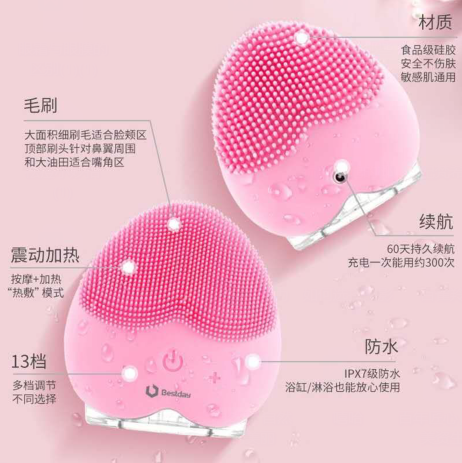 洁面仪是近年来兴起的最新洁面方式,也被称作洗脸刷,主要运用超声波原理让洗脸刷上的细毛震动,从而达到高效无刺激的清洁和按摩效果。将清洁后的洁面仪放在无线充电器上,能通过自带的烘干系统让刷头干燥,让消费者下次使用的依旧是干净刷头。 洁面仪通过振动摩擦,让洁肤品与皮肤上的污垢充分结合与乳化。皮肤并非是光滑的平面,它有着无数肉眼看不见的凹陷,缝隙,普通洁肤品和手指不能够充分接触这些难以接触的部位,而洁面仪则是通过微震荡按摩能使洁肤品能够更好的进入皮肤的凹陷缝隙与毛孔中。